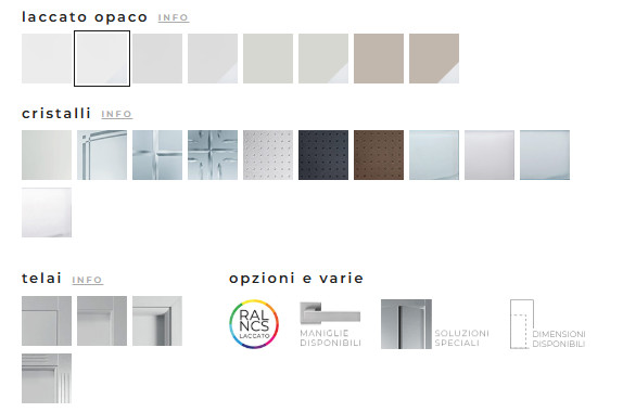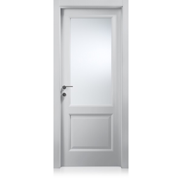 Porta per interni a battente o scorrevole, caratterizzata da linee più squadrate che esaltano le diverse profondità di incisione. Le ante, con finitura laccata, possono essere cieche oppure impreziosite da un cristallo posto nella parte superiore.