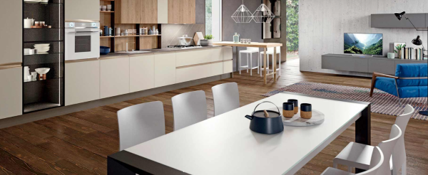 Linee rigorose si intersecano per creare una geometria sobria ed essenziale, senza rinunciare alla funzionalità.
