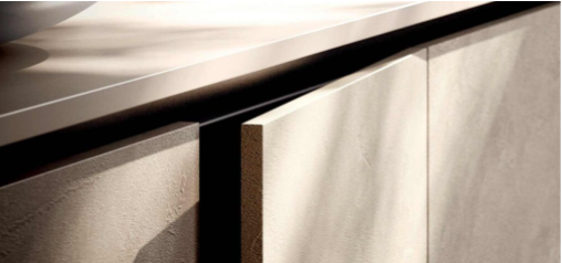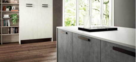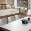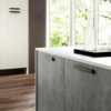 Un sorprendente mix di texture in una cucina estremamente lineare.