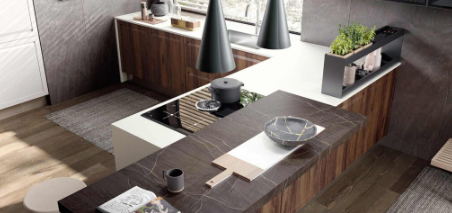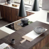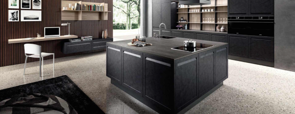 L’ampia isola diventa fulcro intorno al quale ruotano tutti i gesti legati alla preparazione del cibo, grazie alle zone cottura e lavaggio, all’ampio piano di lavoro e alle capienti basi contenitive, perfette per avere sempre tutto a portata di mano.