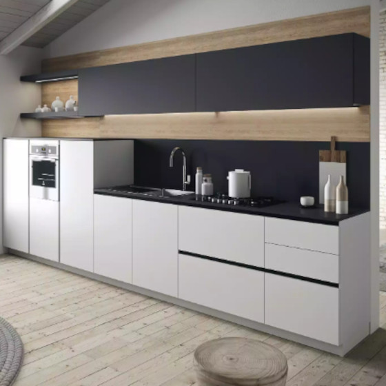 First è un progetto di cucina senza maniglia: offre un’estetica minimale e senza tempo, ma allo stesso tempo, vivace e contemporanea, grazie alle possibilità compositive possibili.