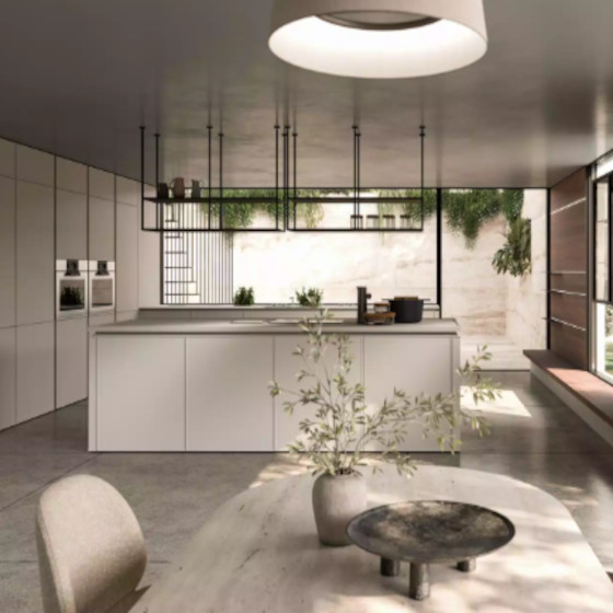 La geometria della cornice di Quadra si integra con una vasta modularità e con esclusivi accessori.