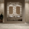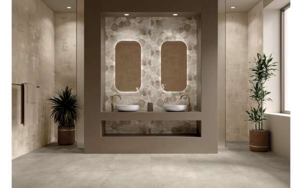 La collezione ispirata alla pietra, è caratterizzata da tracce irregolari fatte di strati lentamente sedimentati tra loro.
