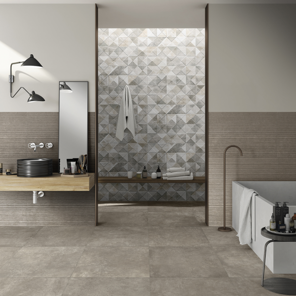 Ceramiche Mariner amplia il potere decorativo di Boston con una linea di rivestimenti eleganti e sofisticati, dal design originale, nel formato 30×90. Si va dalla struttura tridimensionale Righe ideale per dare movimento alle pareti, ai motivi geometrici del decoro Geomix, sviluppato in tre diversi soggetti, per finire con il decoro Soffioni, un’esplosione di riflessi cangianti. Il tutto perfettamente coordinato ai fondi con tonalità di bianco caldo, freddo, fango, ghiaccio e grigio.